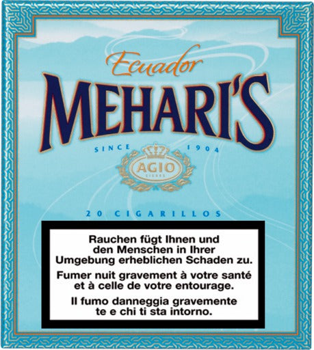 Die Agio Mehari's Ecuador sind Cigarillos mit einer Länge von 100 mm und einem Durchmesser von 9 mm. Sie verfügen über ein helles, im Schatten gereiftes Ecuador-Deckblatt, das ihnen ein mildes und feinwürziges Aroma verleiht. Die Einlage besteht aus einer Mischung ausgesuchter Tabake aus Indonesien und Südamerika. Mit einer Rauchdauer von etwa 10 bis 15 Minuten bieten sie ein sanftes und ausgewogenes Raucherlebnis.