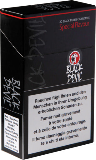 Die Black Devil Special Flavour Vanille Zigaretten bieten ein außergewöhnliches Raucherlebnis mit einem süßlich-würzigen Vanillearoma. Diese Zigaretten sind ideal für Raucher, die ein aromatisches Erlebnis suchen, das über den klassischen Tabakgeschmack hinausgeht. Das intensive Vanillearoma kombiniert sich harmonisch mit dem hochwertigen Tabak und bietet einen angenehm weichen und süßen Rauchgenuss.