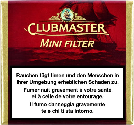 Die Clubmaster Mini Filter Red sind kleine Cigarillos mit einem dezenten Vanillearoma. Sie bestehen aus einer erlesenen Tabakmischung und sind mit einem Sumatra-Deckblatt umhüllt. Der integrierte Filter sorgt für ein mildes Raucherlebnis. Mit einer Länge von 70 mm und einem Durchmesser von 7 mm bieten sie einen kurzen Rauchgenuss von etwa 5 bis 10 Minuten.