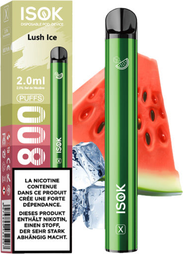 Die ISOK X Lush Ice 800 Puffs 20mg Einweg-E-Zigaretten bietet den erfrischenden Geschmack von saftiger Wassermelone, kombiniert mit einem kühlenden Menthol-Effekt. Mit einem Nikotingehalt von 20 mg/ml eignet sie sich besonders für Dampfer, die ein intensives und erfrischendes Geschmackserlebnis suchen. Das Gerät ist sofort einsatzbereit und benötigt kein zusätzliches Zubehör. Bitte entsorgen Sie die Einweg-E-Zigaretten nach Gebrauch fachgerecht im Elektromüll.