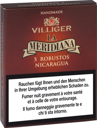 Die La Meridiana Robusto ist eine hochwertige Zigarre, die für ihr mildes bis mittelkräftiges Aroma geschätzt wird. Mit einer Länge von 152 mm und einem Durchmesser von 20,6 mm (Ringmaß 52) bietet sie eine Rauchdauer von etwa 45 Minuten. Die Einlage besteht aus einer sorgfältig ausgewählten Mischung nicaraguanischer Tabake, umhüllt von einem nicaraguanischen Deckblatt.