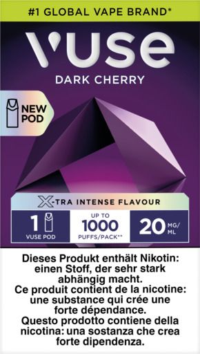 Erleben Sie mit dem Vuse Pod Dark Cherry ein intensives Dampferlebnis, das den Geschmack dunkler Kirschen mit einer feinen Auswahl roter Beeren kombiniert. Dieses Liquid bietet einen Mix aus roten Früchten und schwarzen Johannisbeeren mit einem leicht frischen Abgang.